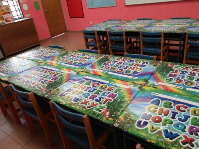 Alas Meja Murid Sekolah Comel Tarpaulin Solvent Printing Shopee Malaysia